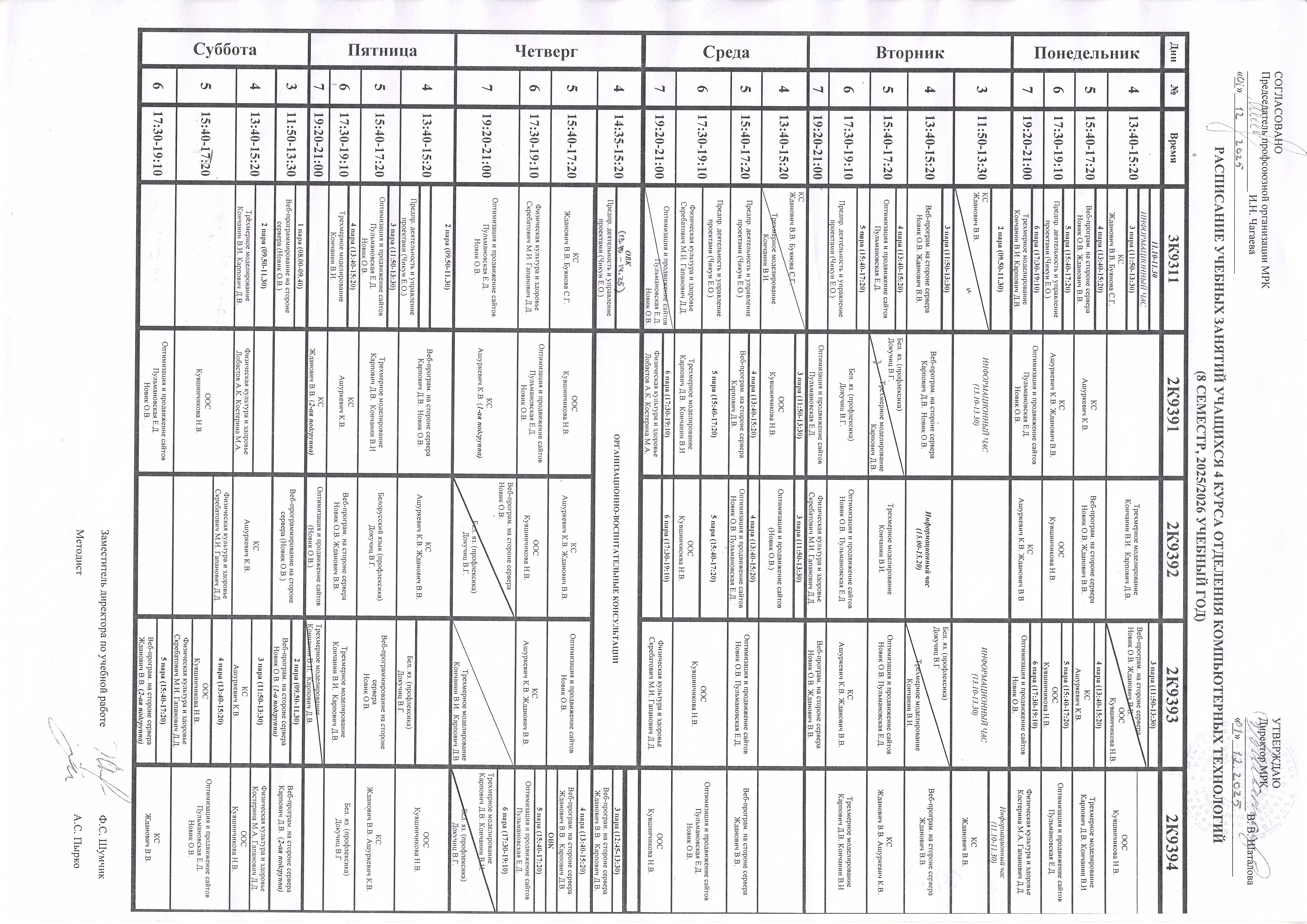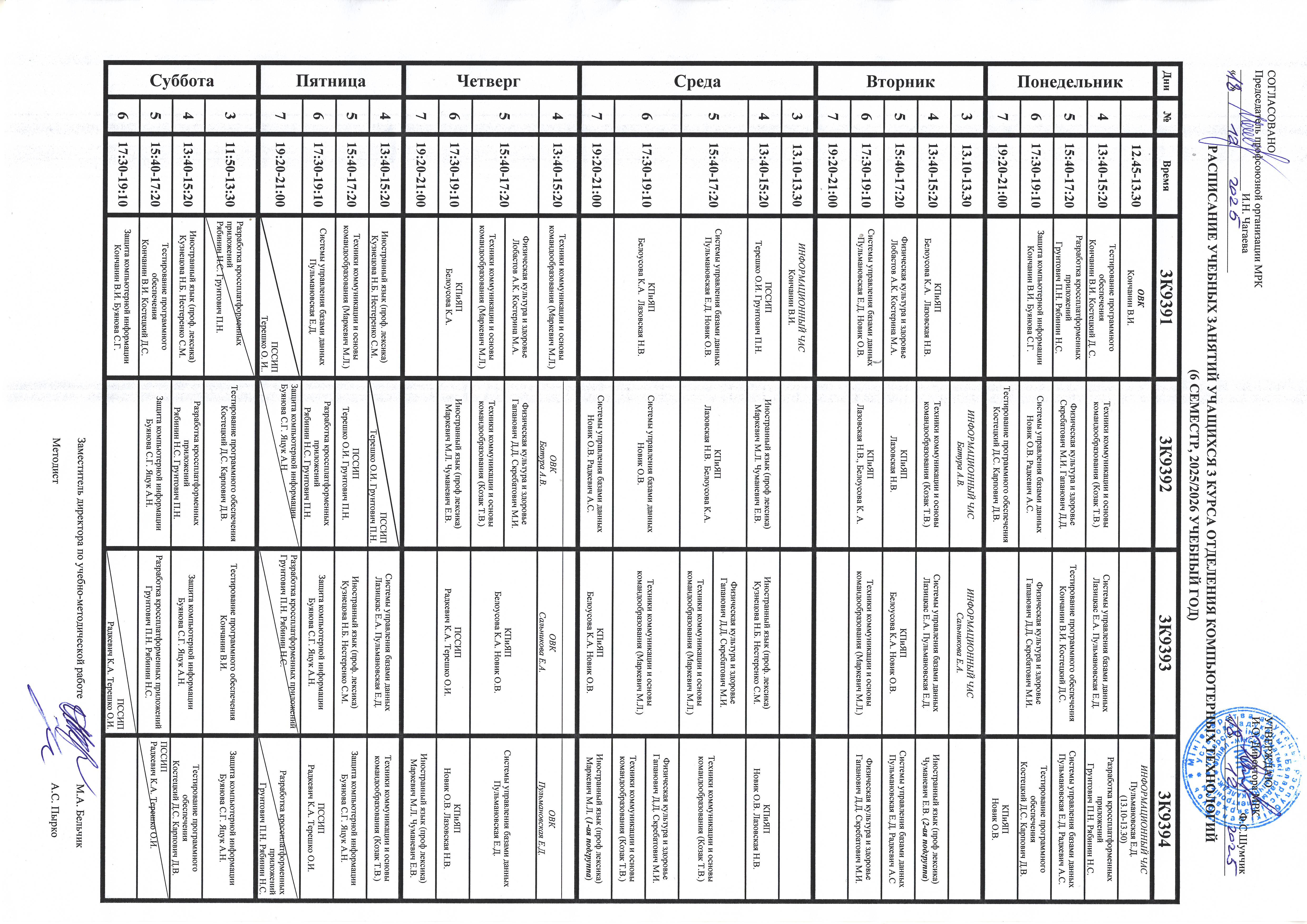 Заняткі. 2 семестр: кафедра вылічальнай тэхнікі