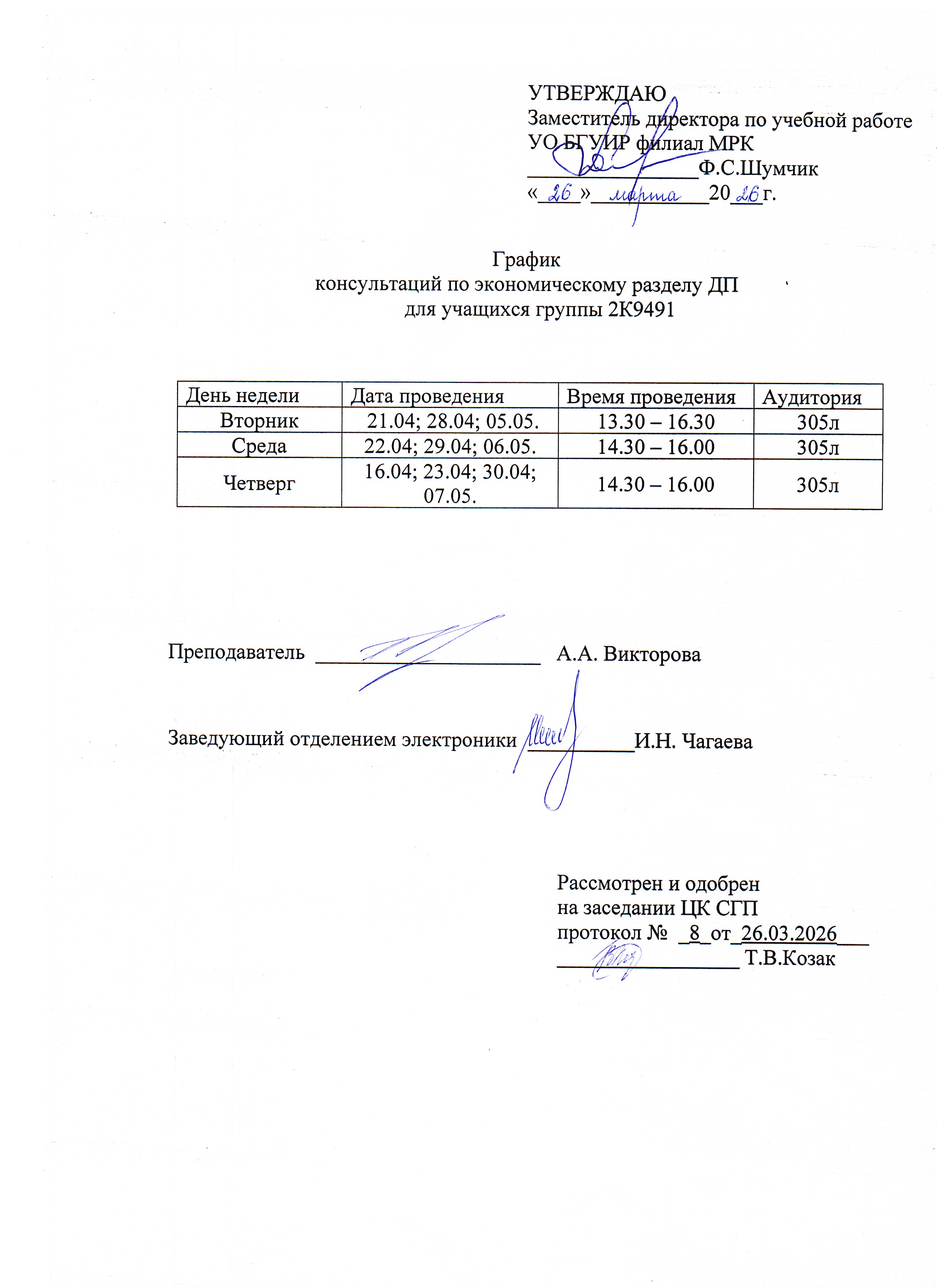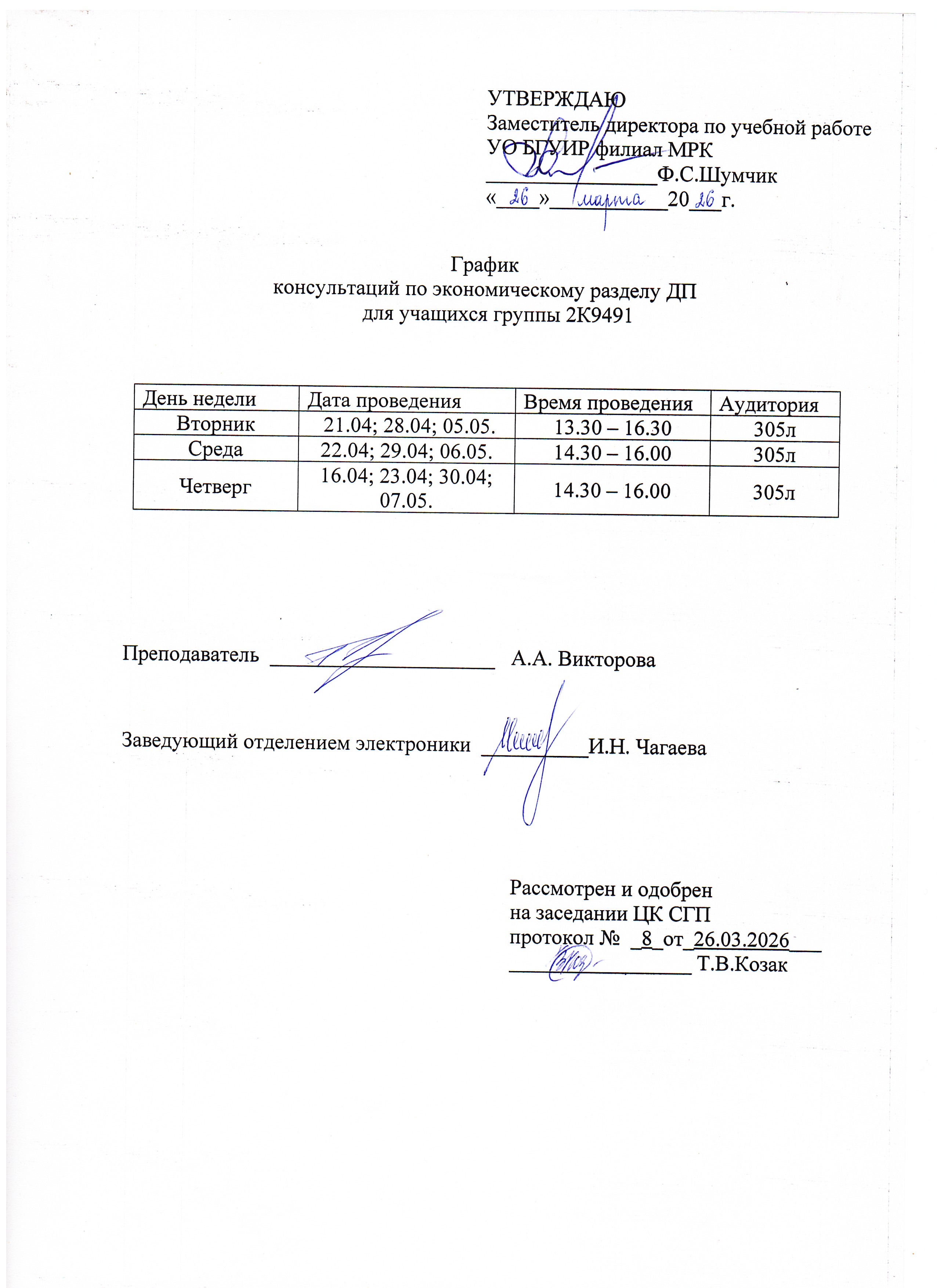 График консультаций по экономическому разделу 2К9491