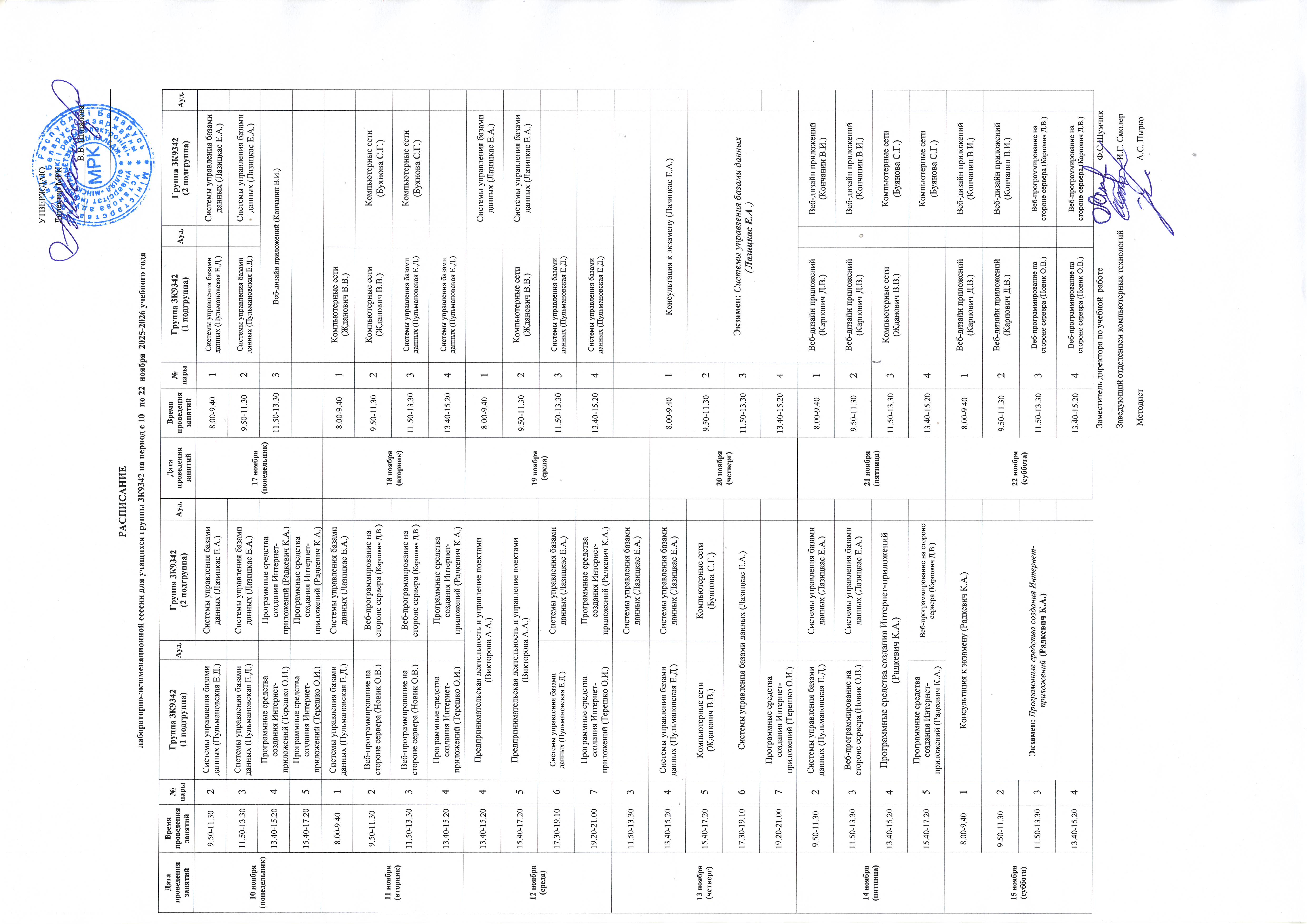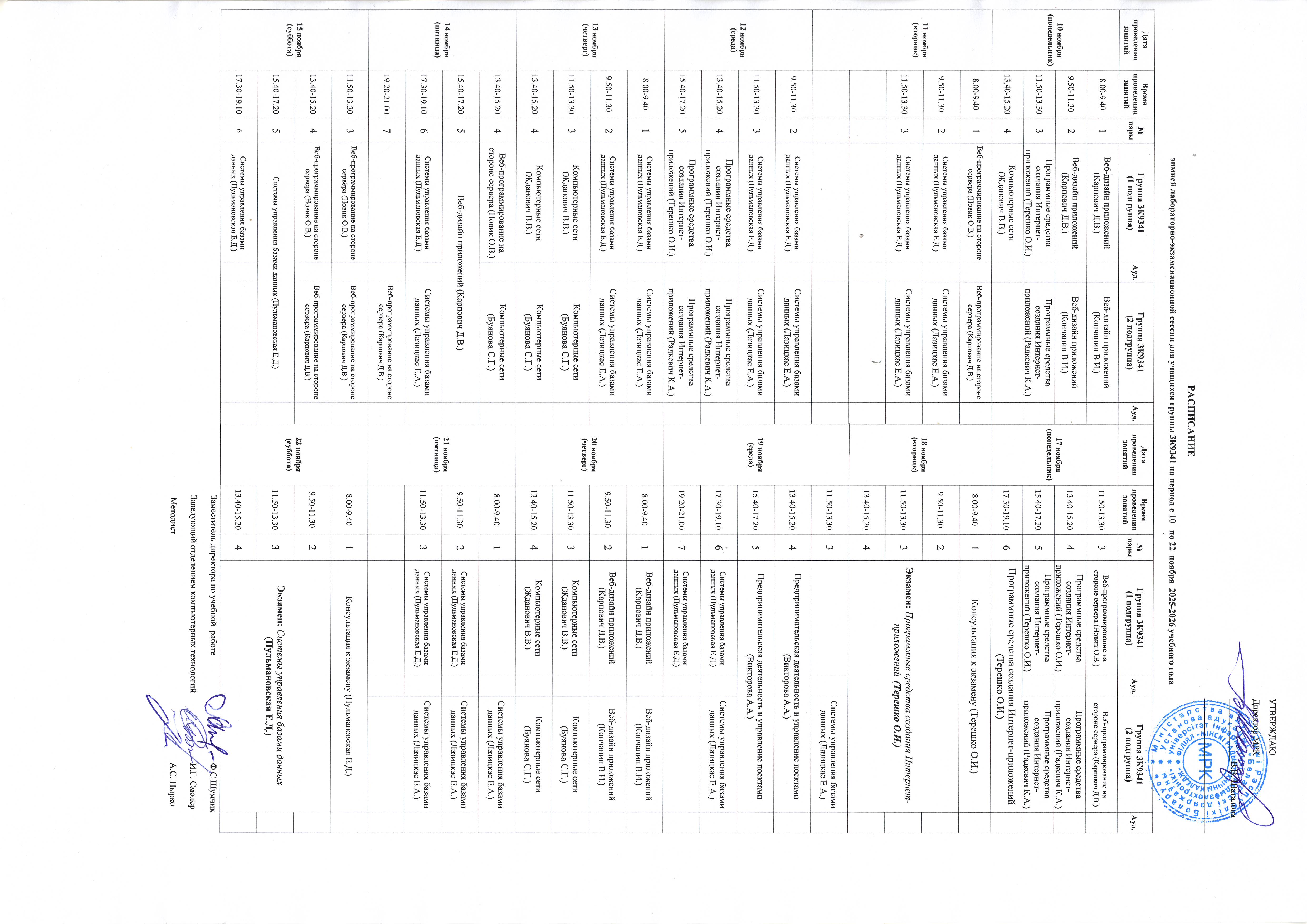 Schedule of the laboratory examination session for students of group 3K9342 for the period from November 10 to November 22, 2025-2026 academic year