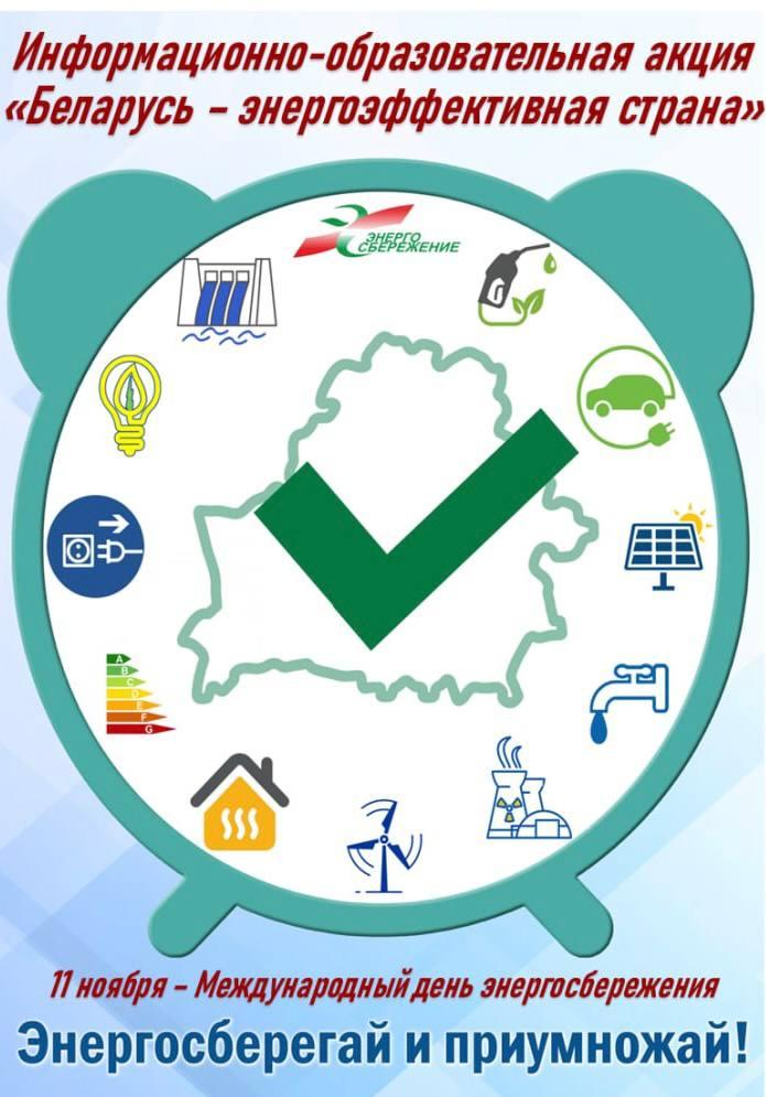 С 10 по 20 ноября 2025 года Департамент по энергоэффективности проводит республиканскую информационно-образовательную акцию «Беларусь – энергоэффективная страна». Она приурочена к Международному дню энергосбережения (11 ноября).