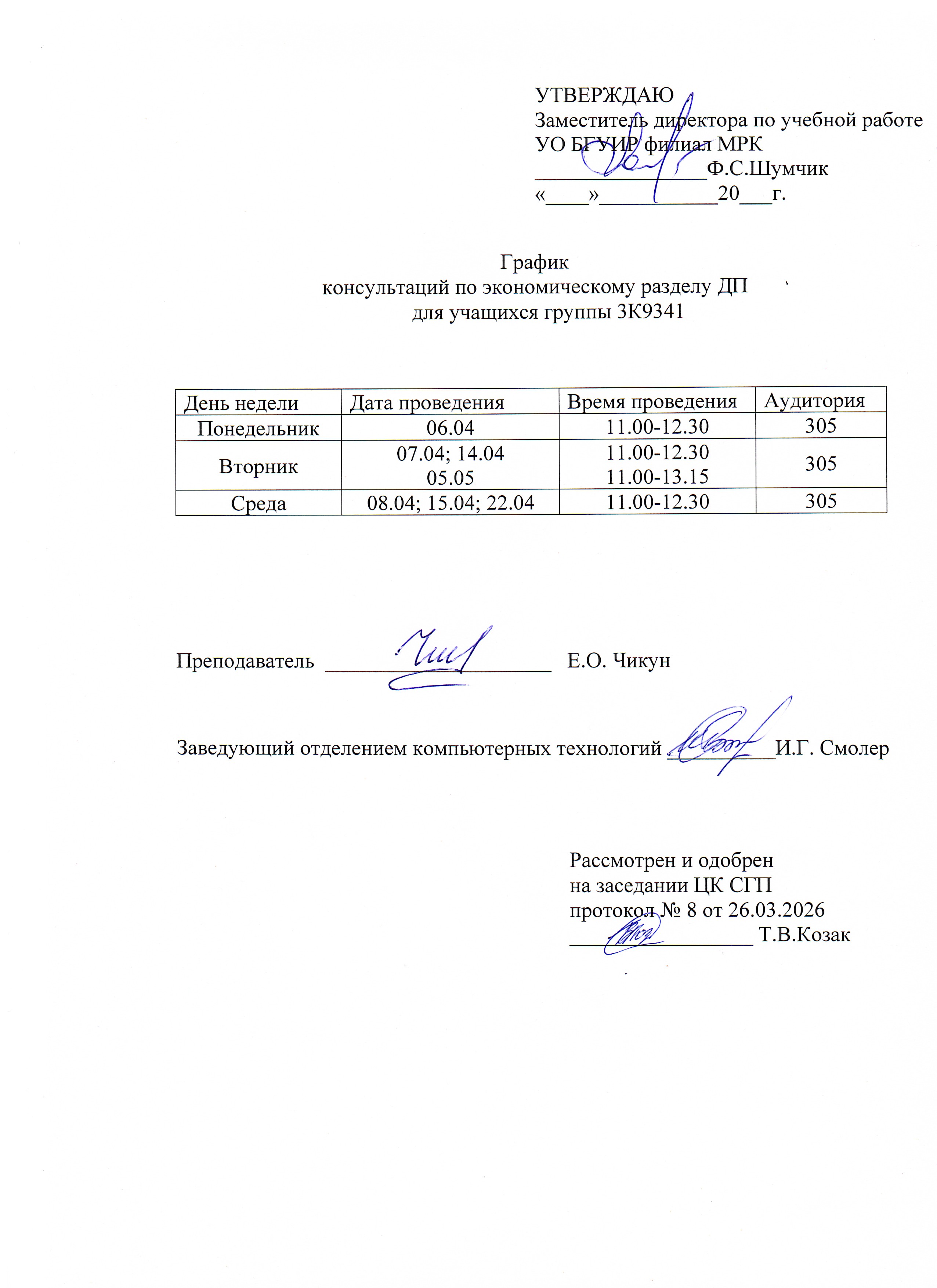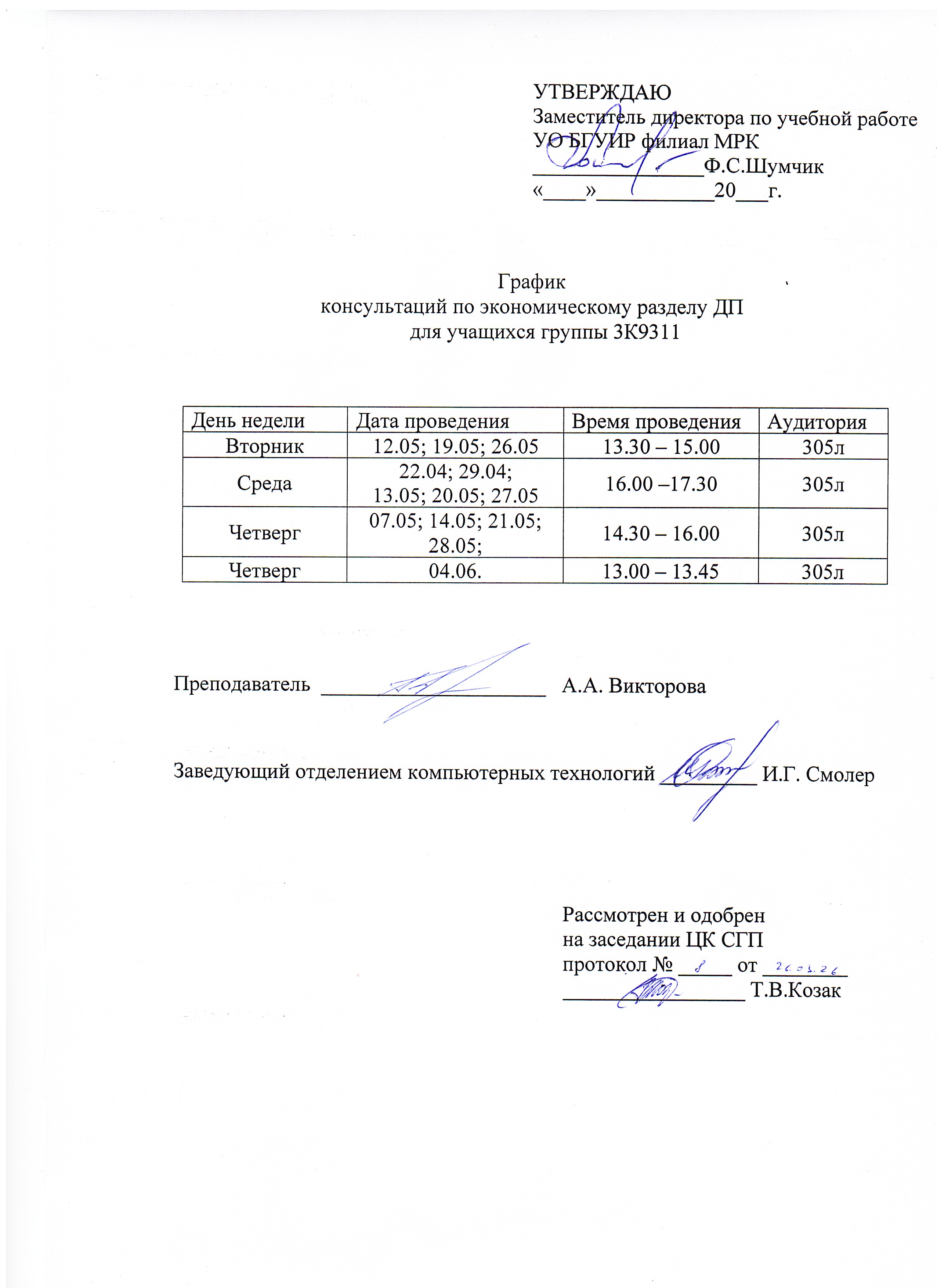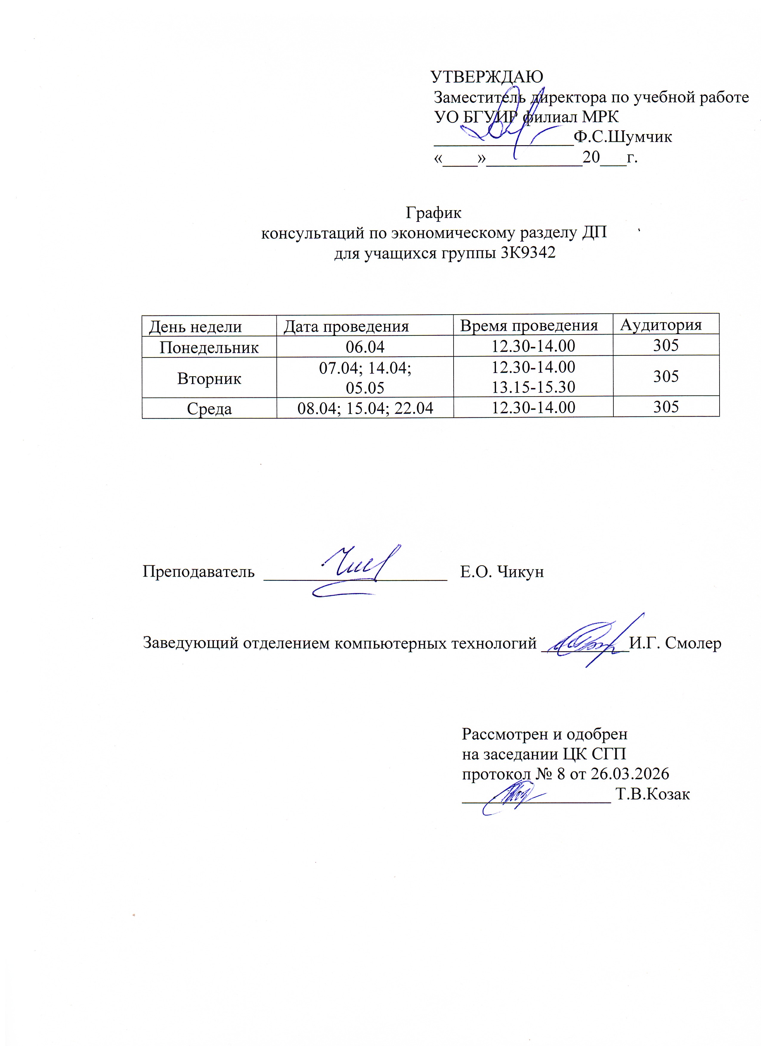 Графики защиты курсовых проектов