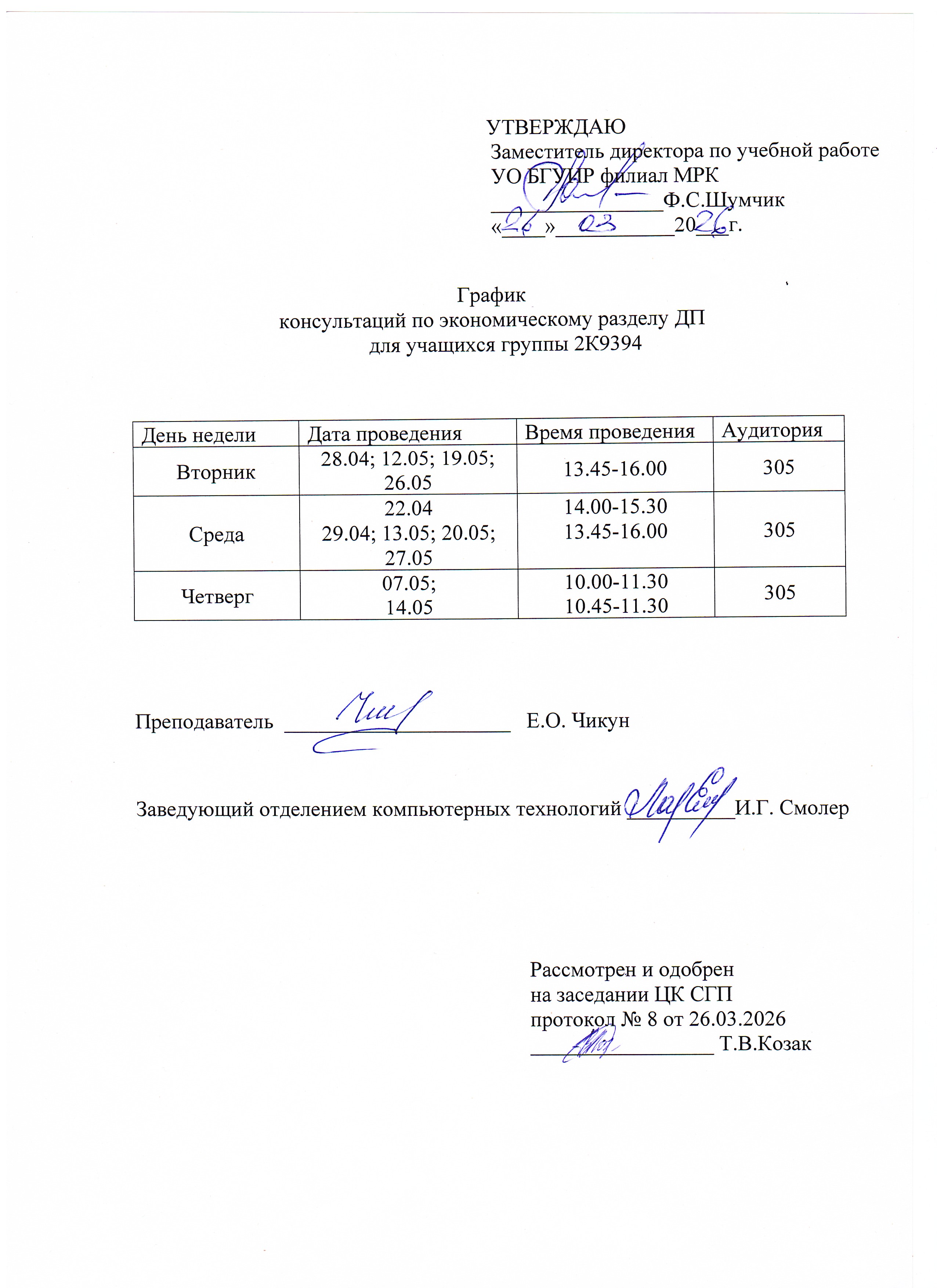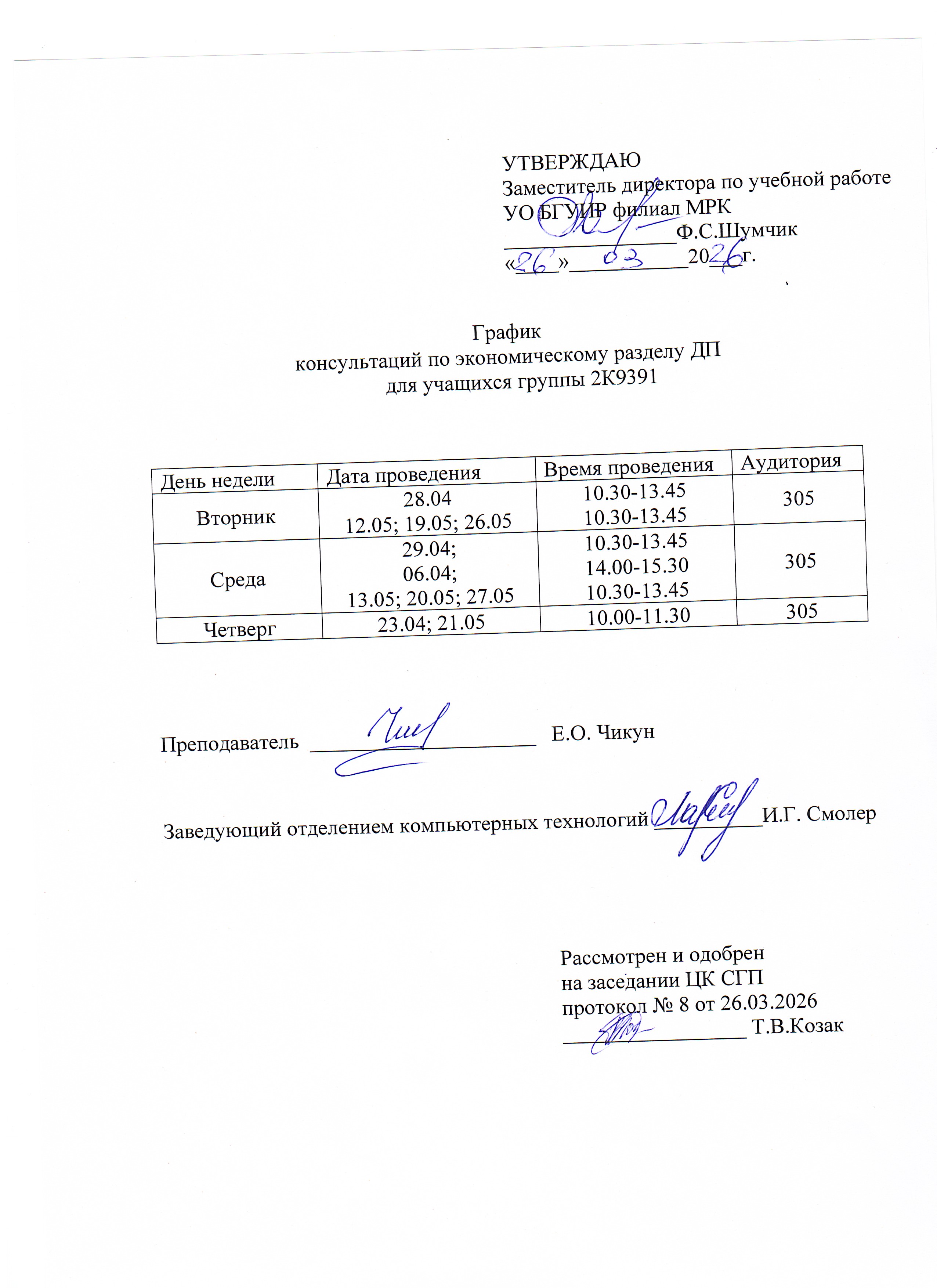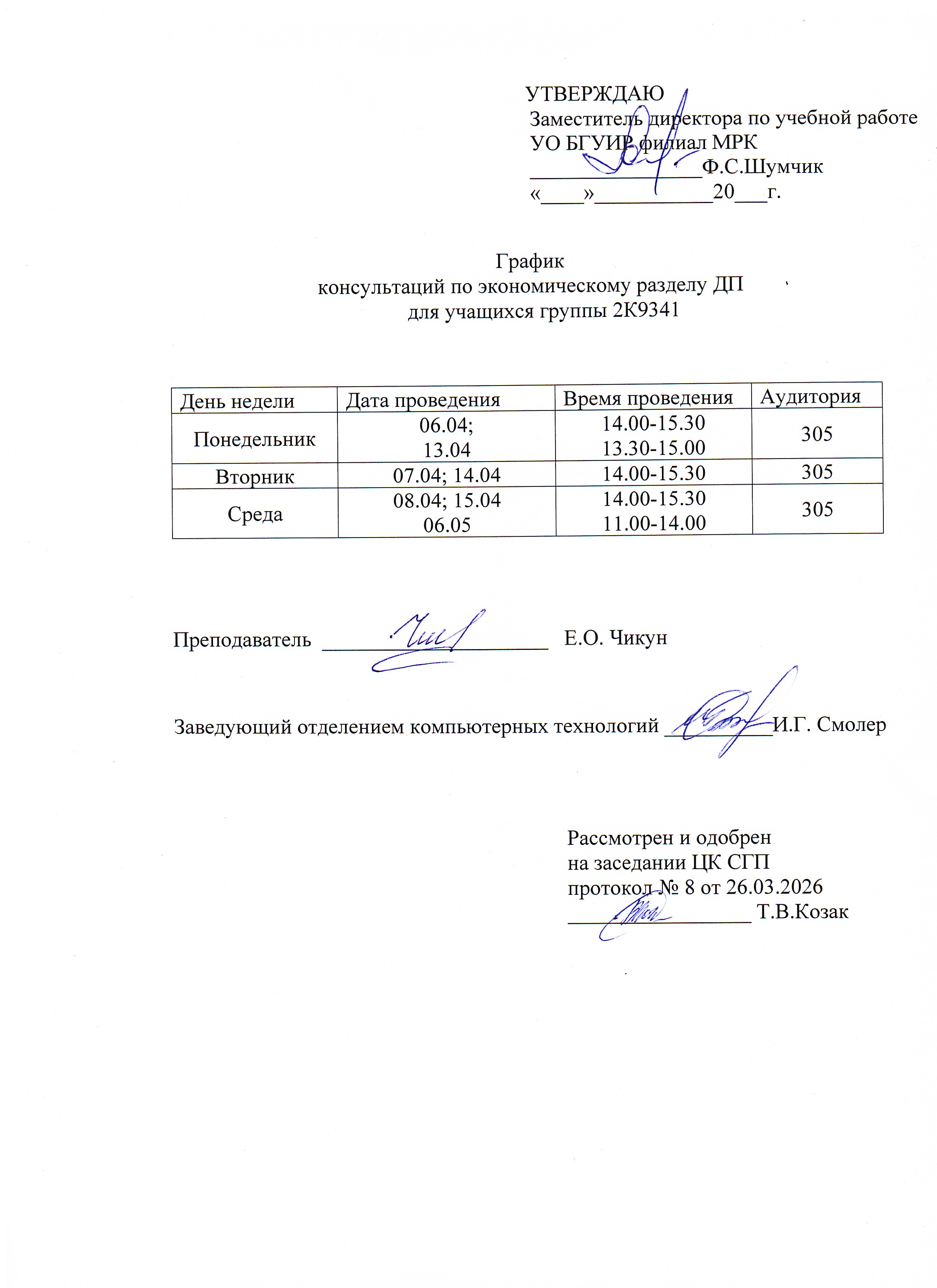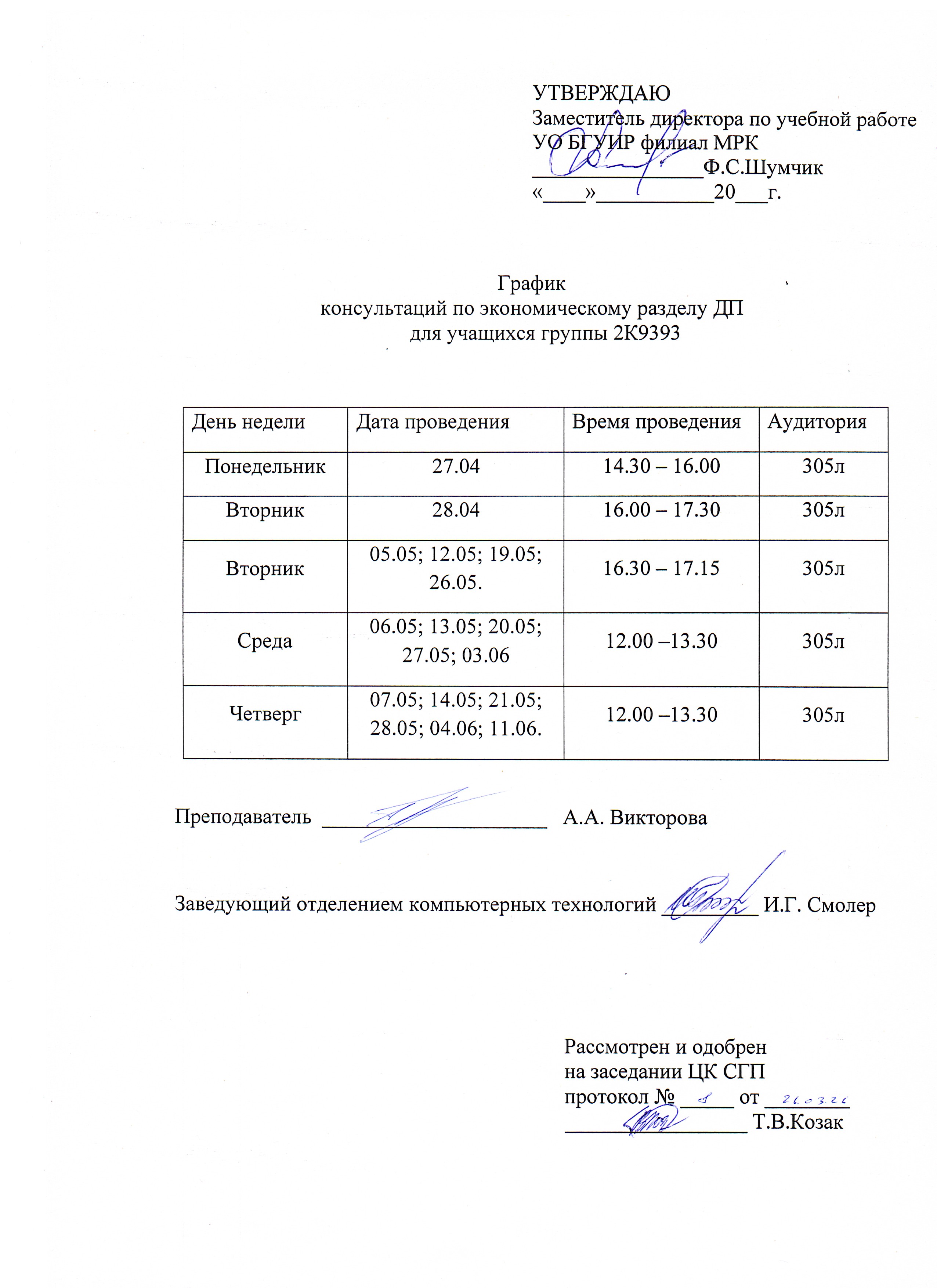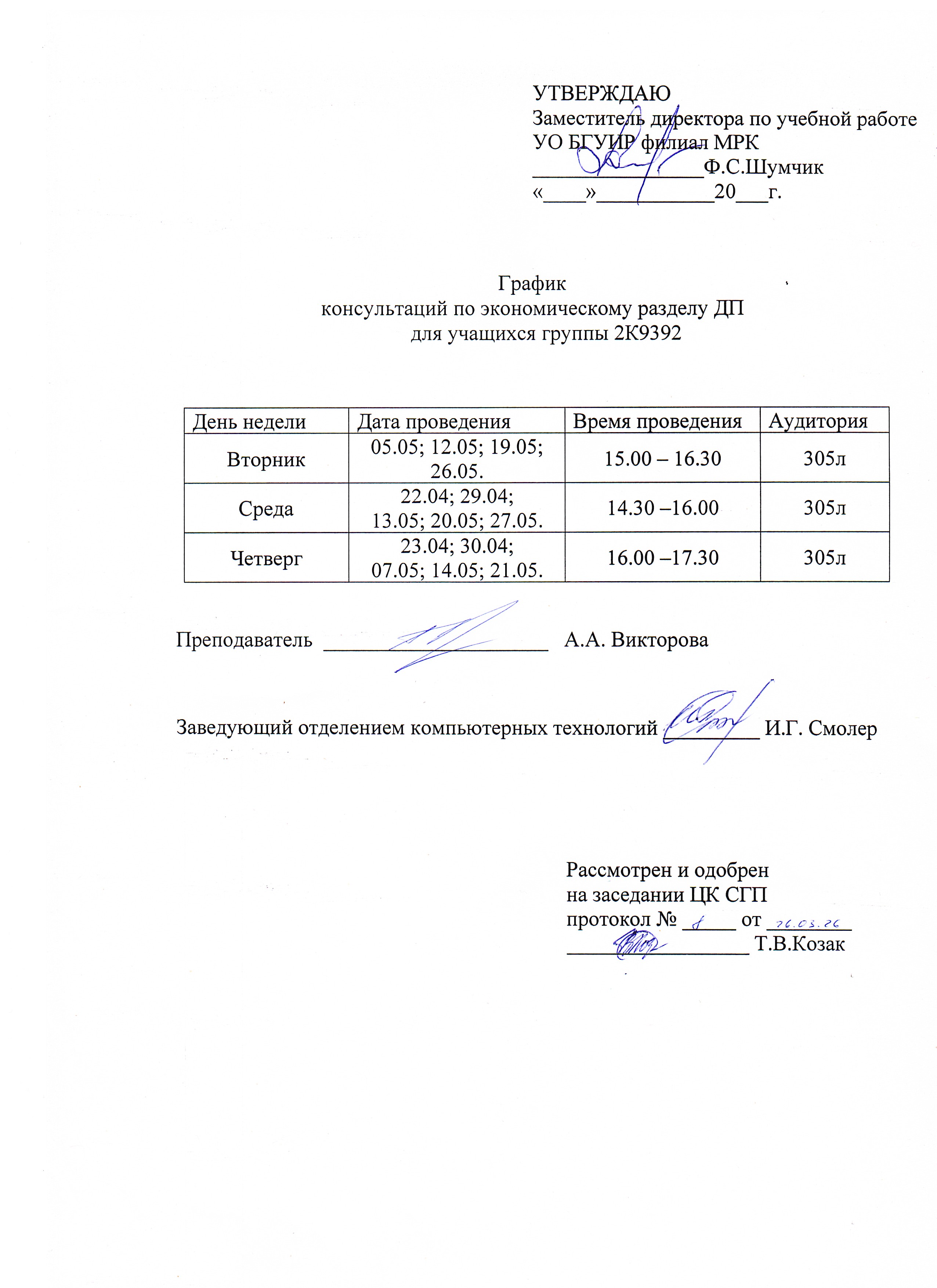 Графики защиты курсовых проектов
